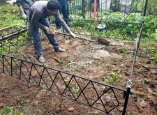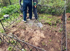 Первым делом мы принялись за уборку: убрали с территории места захоронения абсолютно всё, включая выложенную заказчиком плитку, памятники, а также сорную траву.