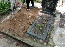 После измерений и согласования макета надгробья с клиентом возвращаемся на участок.