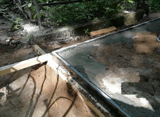 Облицовываем существующее бетонное основание полированным гранитом. Сначала закрываем плитами торцы, затем и поверхность.