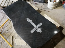 Обратную сторону надгробья украшаем гравировкой православного креста, на лицевую наносим надпись с основной информацией о покойном.