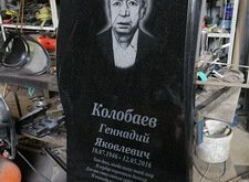 Предоставленную клиентом фотографию умершего готовим к нанесению на гранит, затем запускаем гравировальный станок и выбиваем портрет на камне.