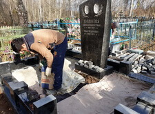 Затем мы аккуратно сняли само надгробье с постамента, после чего смогли свободно работать на участке.