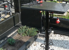 Чуть позже провели работы по озеленению и окраске портрета в цвет. Между могил посадили канадскую ель, очень красивое вечнозеленое растение с густой хвоей. Цветники на обеих могилах засажены цветами. Мраморная табличка с ранее умершими именами нашла свое место сбоку от одного из памятников.