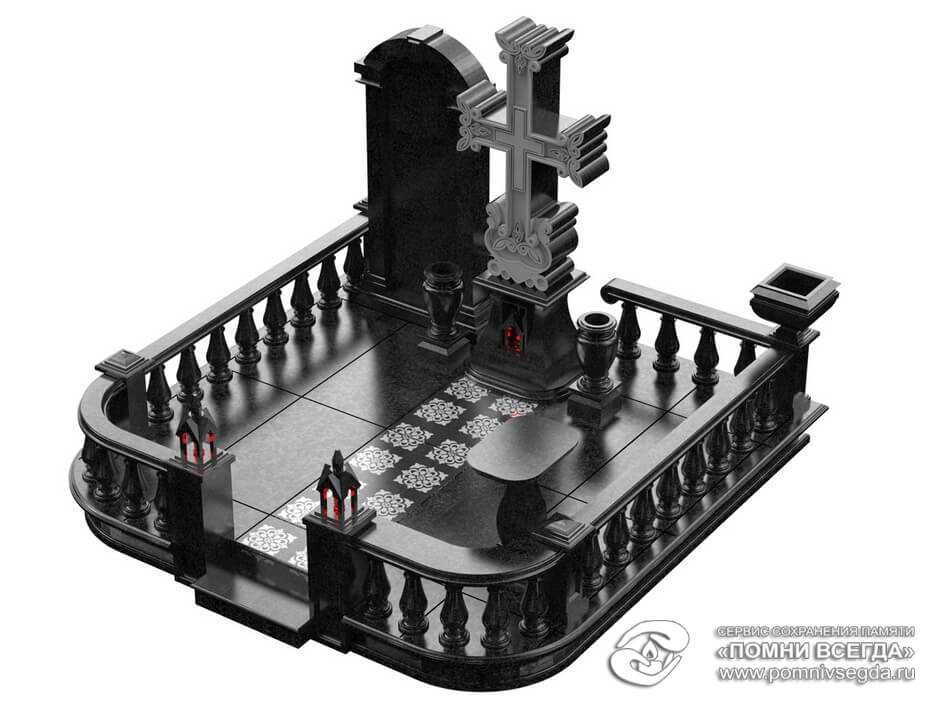 Вариант комплекса для армянского захоронения. Богатое и щедрое оформление элементов и деталей – это то, что отличает подобные места захоронений от других могил. В данной модели много повторяющихся элементов. Очень важно, чтобы на этапе изготовления все элементы комплекса были качественно изготовлены. В результате получается великолепный памятник – воплощение уважения и любви к умершим.