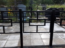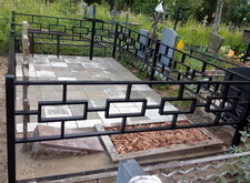 Первое, что мы сделали на могиле – уборку. Тщательно очистив место захоронения от сорной травы и прочего мусора, мы взялись за монтаж ограждения. Ножки оградки вбили в специальные ямы, а по нижней её части проварили металлический борт, служащий одновременно и ограничителем для плитки, и дополнительным каркасом, придающим жёсткость самой конструкции.