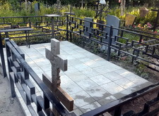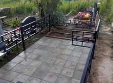 На момент нашего приезда на кладбище место захоронения выглядело откровенно заброшенным: единственным украшением участка был невысокий православный крест, остальная же территория могилы густо заросла сорняком. Заказчик пожелал установить ограду на участке, а также выложить территорию места захоронения бетонной плиткой.