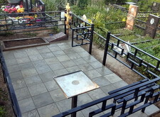 Простая ограда и бетонная плитка на могиле