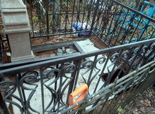 Достаточно сложный и срочный заказ по реставрации старого гранитного памятника. В целом, нам предстояло за неделю полностью благоустроить место захоронения, так как клиент очень сильно спешил с ремонтом. Приехав на могилу в начале дня, мы застали её в следующем состоянии: памятник порядком обветшал, с его вершины пропал православный крест, некоторые надписи затёрлись настолько, что стали нечитаемыми, оградка проржавела, а сам участок порядком порос сорной травой.
